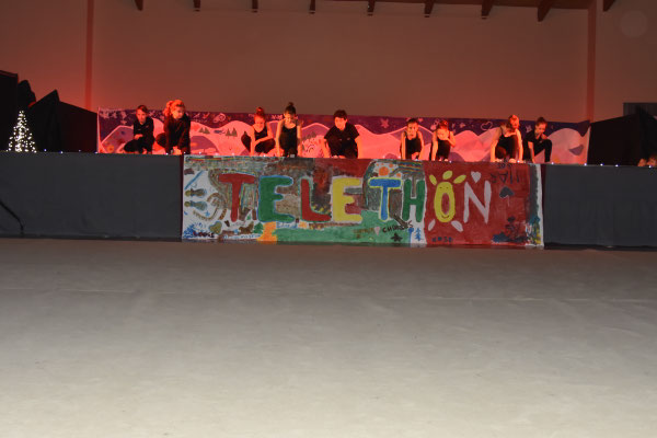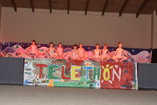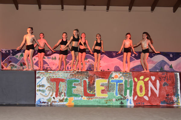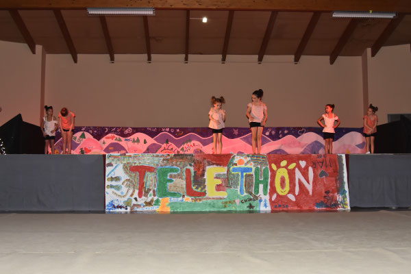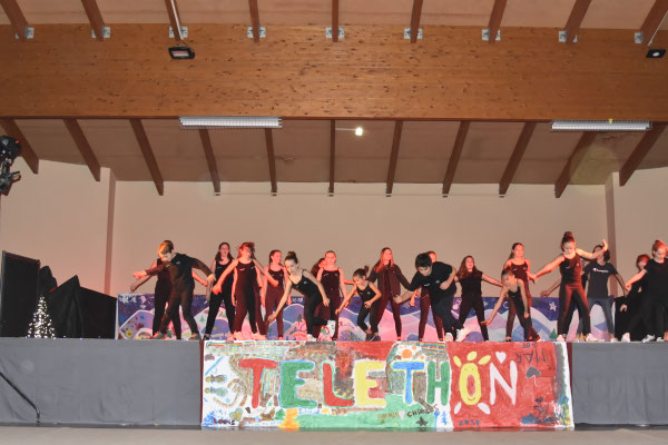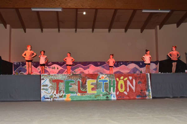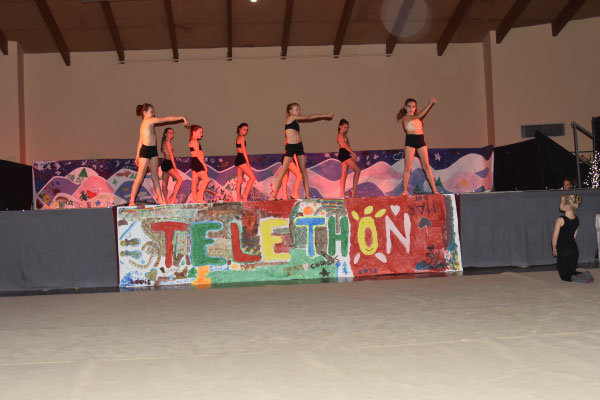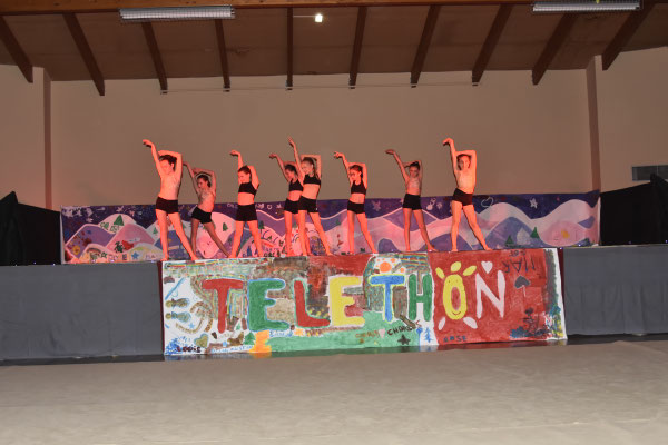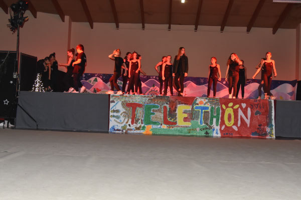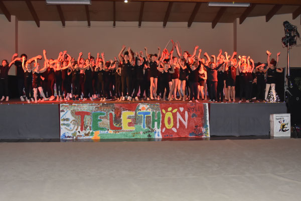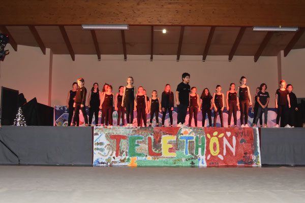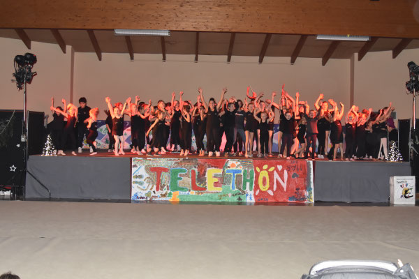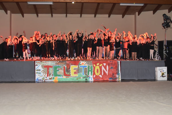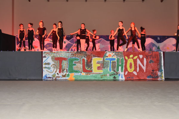 Plus de 80 danseurs, danseuses et gymnastes sont montés sur scène ( ou sur le praticable de G.R) pour présenter une chorégraphie apprise avec leurs professeurs, au profit de l'AFM Téléthon.