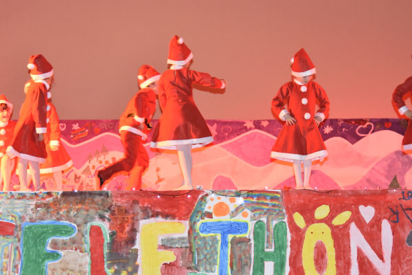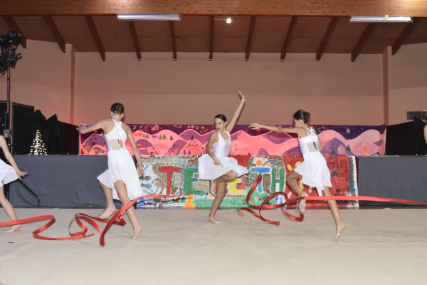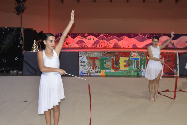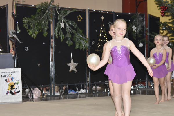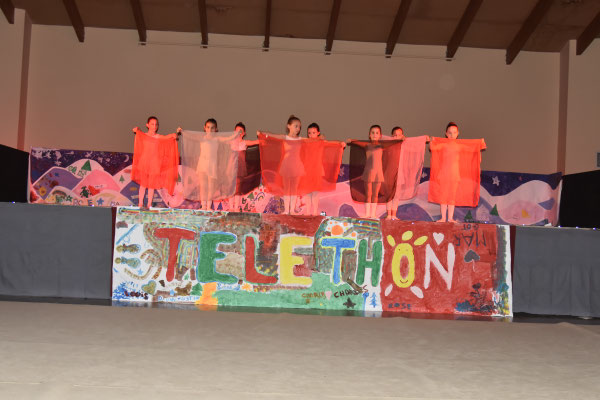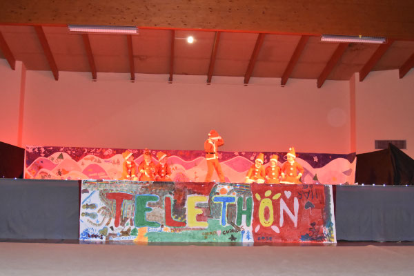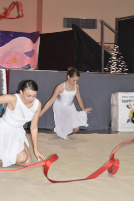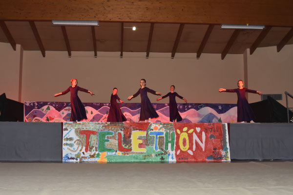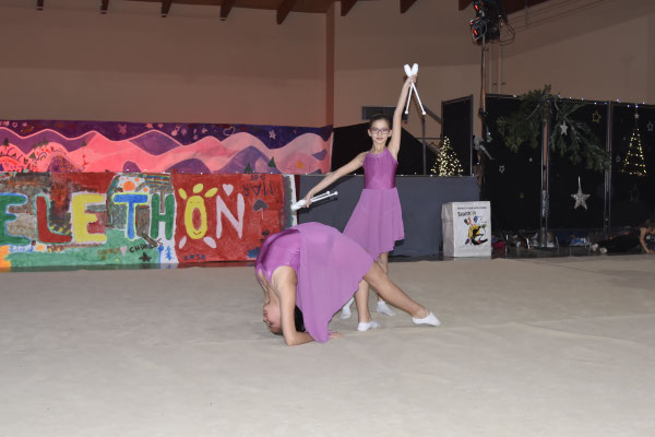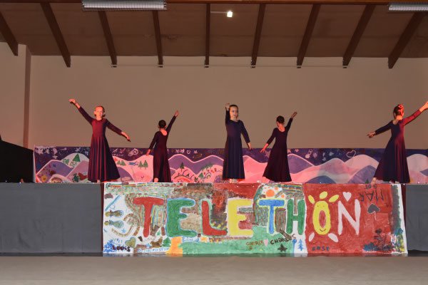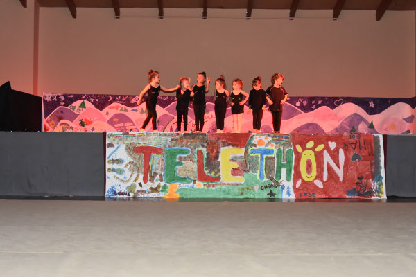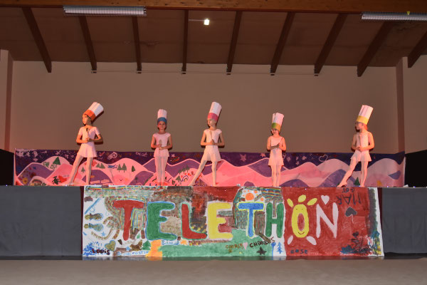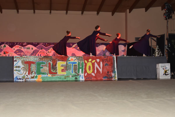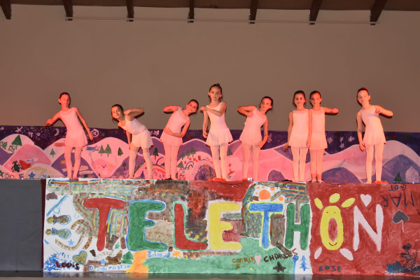 Plus de 80 danseurs, danseuses et gymnastes sont montés sur scène ( ou sur le praticable de G.R) pour présenter une chorégraphie apprise avec leurs professeurs, au profit de l'AFM Téléthon.
