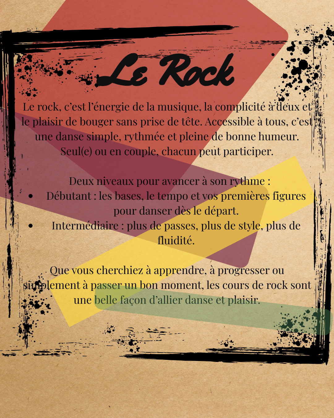 Prêts à enflammer la piste de danse ? Rejoignez nos cours de rock à Châteauneuf-du-Pape et découvrez l'énergie et la bonne humeur de cette danse de couple mythique. Que vous soyez débutant ou que vous ayez déjà quelques pas en tête, notre professeur diplômé, Guillaume, vous guidera pour que vous preniez plaisir à danser.